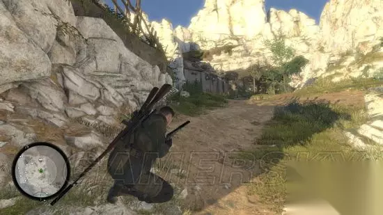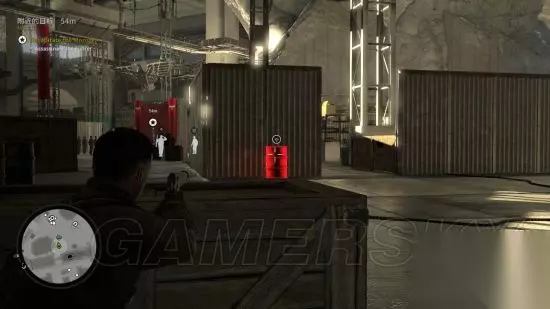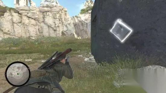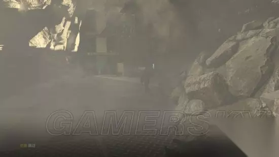 继续前行穿过铁丝网的破洞,会碰到第二只狙击手,同样手枪点掉