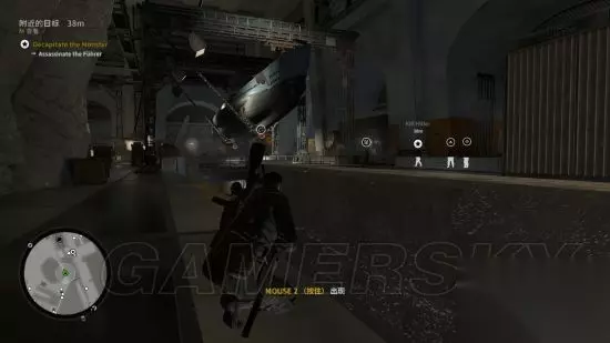读取存档B,不投毒而直接继续前行,沿途清理敌人并注意隐藏尸体。走过桥梁可以看到悬挂起来的船只