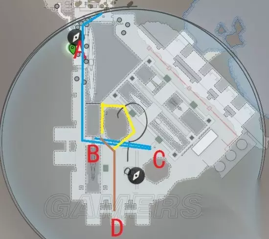 当你进入内部时,元首开始移动 到达A餐厅,品尝火锅 经过B悬挂船只 到达C欢迎会,短暂停留 视察B悬挂船只,短暂停留 之后会随机出现两种情况,一是按黄色路线绕一圈,二是按土色路线 最终都会到达D 成就1【Deja View to a Kill】击杀元首 成就2【Hot Pot】在食物里设陷阱击杀元首