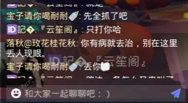 大概就是如标题哈,本来有个人莫名其妙的一直让我打他,我们说了他几句之后又有一个(落秋@玫瑰桂花秋)的人一直在追着我和我朋友骂,如上图哈,有些地方只能打马赛克了,不然发不出去,还有一个“外国佬”,(宝坤)一直用英文键打一堆英文,一直在那刷屏,嗯对两个都很仙家👁👄👁🆘