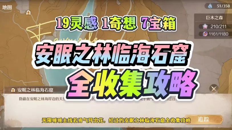 这是《无限暖暖》2.4下半版本的收集攻略,展示了安眠之林临海石窟区域,包含宝箱、奇想星、灵感露珠的全收集内容,能帮助玩家完成该区域的探索收集。
