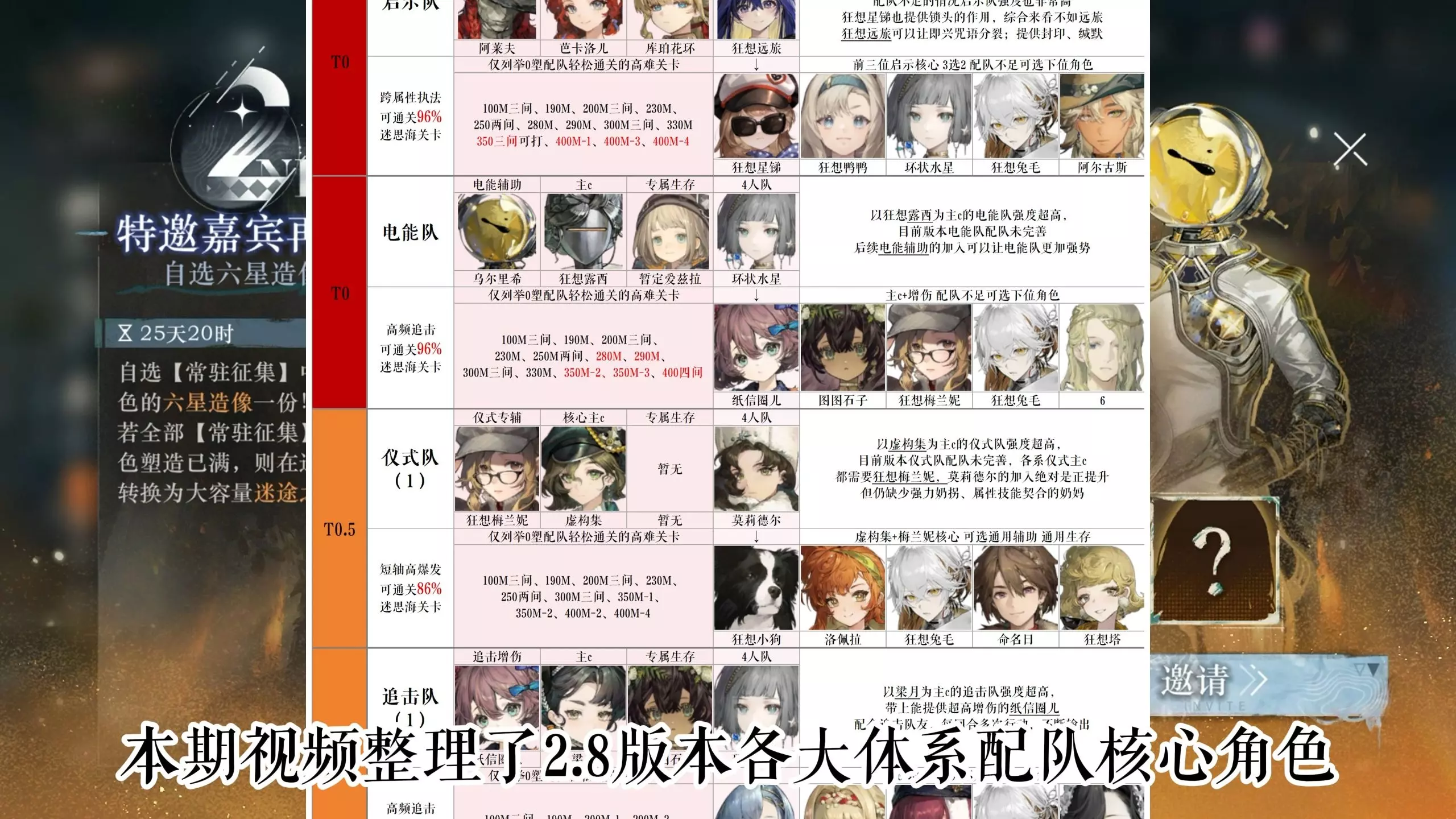 重返未来1999各体系配队 缺队友补位 塑造抽取