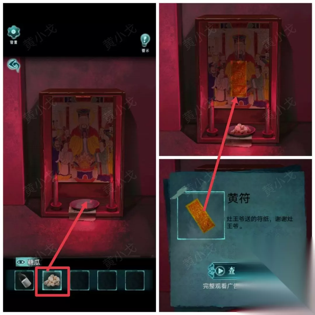 19.放上【糖瓜】,获得【黄符】