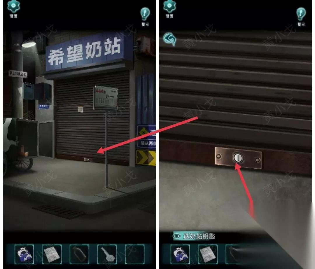 8.点击卷帘门上的锁,用【送奶站钥匙】打开
