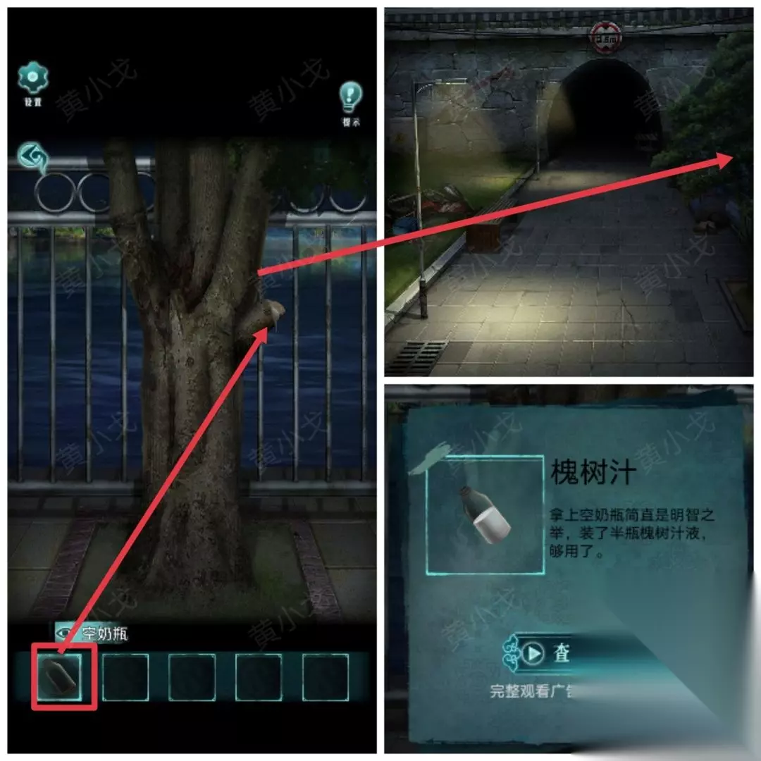 9.(街道)点击槐树,用【空奶瓶】装【槐树汁】