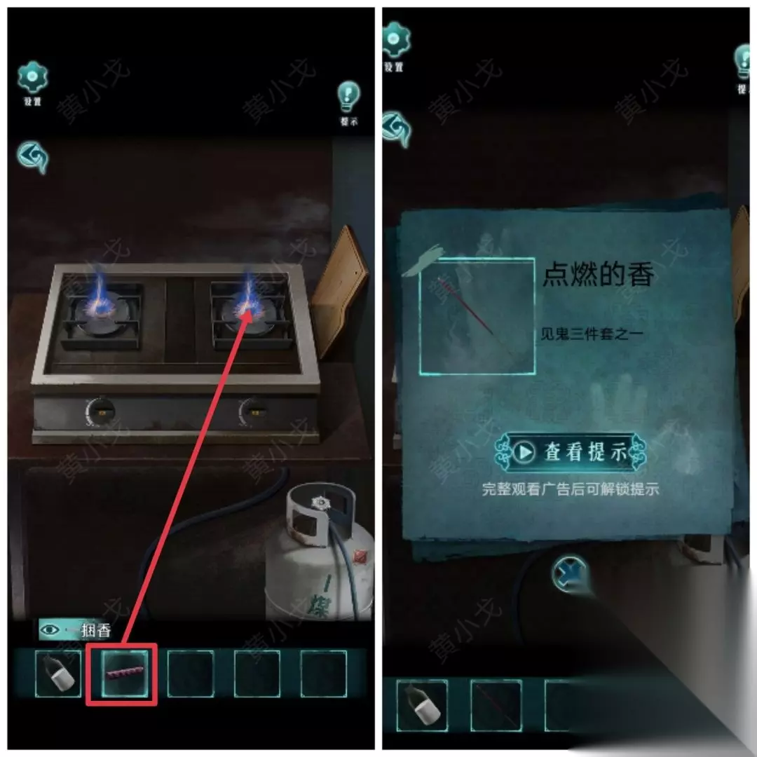 9.(小炒店外)点击灶台,点燃【一捆香】,获得【点燃的香】