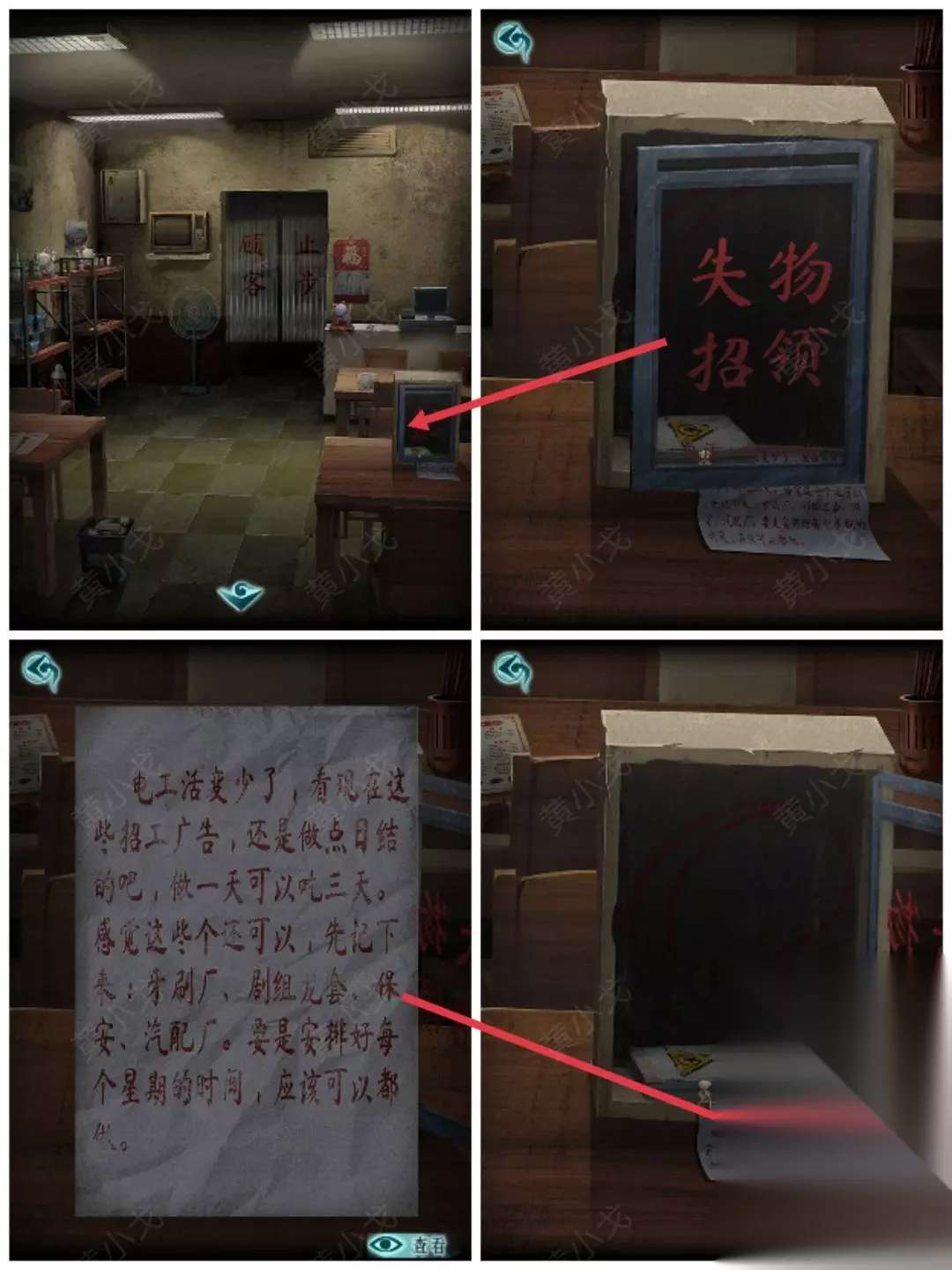 11.(小炒店-大堂)点击失物招领箱,打开,查看纸条内容