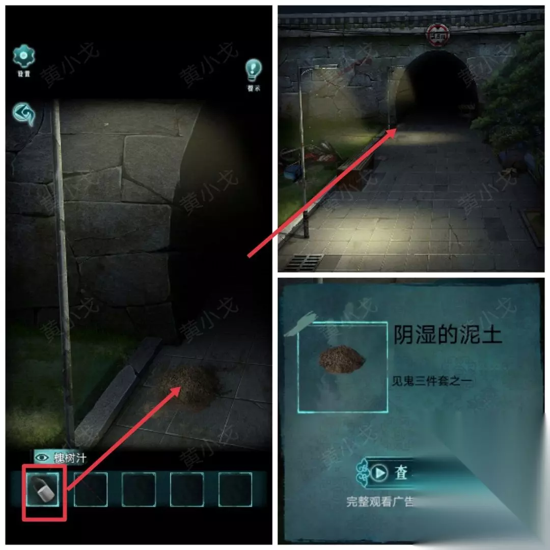 10.点击隧洞口的泥土,倒入【槐树汁】,获得【阴湿的泥土】