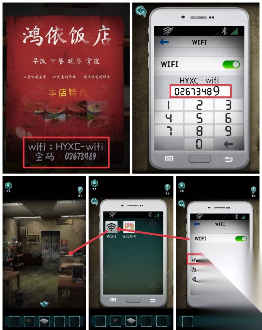18.(小炒店-大堂)点击柜台上的手机,根据海报上的线索,输入WIFI密码:02673489