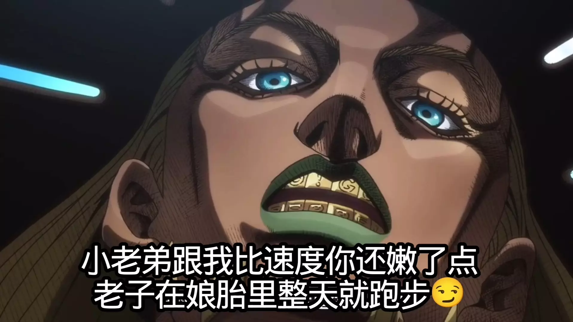 这是《JOJO的奇妙冒险》的趣味二创内容,将第七部的乔尼替换到第一部的场景中,乔尼以第一部的出场方式与迪奥互动,带来了独特的趣味效果。