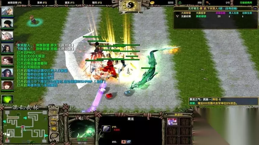 1、小龙女开局,配合2个天地会农民。一直到小龙女陈英雄。 然后明教,升到狮王或者龙王,屯钱,直接出张无忌。 这里就刚好到2个英雄的20波。 2、然后五毒,出到700的2400毒伤技能就行。 这里开始操作要全程手控,特别是遇到鸟一定要五毒手控住,不然容易跑。 开始出天地会——陈近南。出到吴六奇就四个英雄,有五毒2400的毒伤技能,轻松过。 杀完这一波刚好能出陈近南。 3、这里就开始重头戏了——随机关。这里很多人怕成昆那一波。成昆是高防御,但是血没多少,我造陈近南就是看重他1000自身原点半径的凝血神爪和溅射,忽略防御。配合张无忌的太极和五毒的手控,怪的速度就很慢。陈近南范围群伤是非常的给力。 出了陈近南之后,就开始造魔教,出380的范围冰冻,进一步把减速扩大化,让陈近南疯狂输出。然后继续出明教的紫衫龙王,再出金毛狮王(造这些的时候,要把握好拆迁怪的距离,估计下拆迁怪哪里死,免得功亏一篑)。接着把魔教升级到加速那一级就好,为了是把狮王和龙王技能触发率提高。 4、这里基本就已经通关了。剩下的钱在拐角的地方再造一对的狮王和龙王。 打完收工。