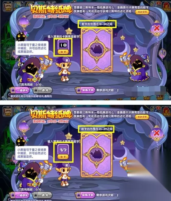 洛克王国贝斯特纸牌活动今日上线,这是一个玩纸牌活动,准确猜中卡牌背面的数字就算胜利,两方从1-100之间的数字猜,双方猜一个数后逐步缩小范围,最终看谁猜对即可。下面是233乐园小编给大家带来的洛克王国贝斯特纸牌玩法攻略,感兴趣的小伙伴们一起来看看吧。 洛克王国贝斯特纸牌玩法攻略 贝斯特纸牌 想要跟贝斯特来一局纸牌游戏么,准确猜中卡牌背面的数字就算胜利!完成活动可获得贝斯特的进化资格!(小黑猫可于星之泉场景中捕捉,并可自然进化成黑猫巫师。) 活动时间:2月2日-3月14日 活动地图:暗黑魔法学院 活动获得:贝斯特,礼遇契约