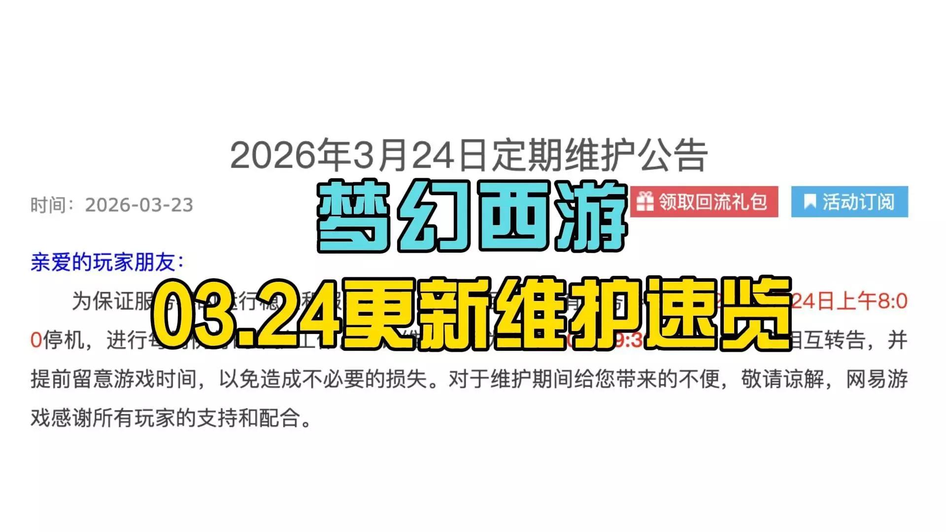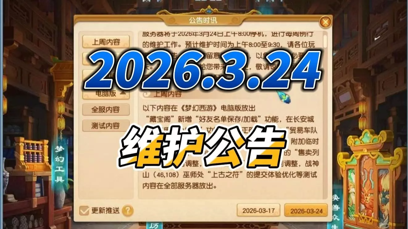 梦幻西游:2026年3月24日维护公告