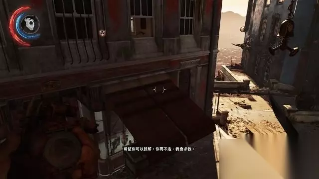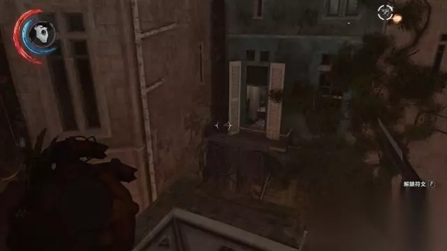 朝后巷的蓝色建筑物望去,借助灯架可以跳到蓝色建筑物二层的阳台。 此蓝色楼宇内会有触发机关,慢行并且按F键拆除机关线,使用倾斜木板上到三层可以找到两份符文。