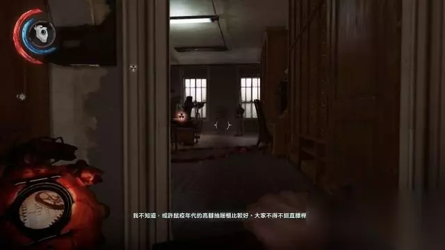 骨符×3 操作书房内的拉杆让楼层归位,进入任意一个夹层内,都可以在这座建筑抬升时进入到一个管道夹层内,里面有一具尸体,在其身上拿到一个骨符。