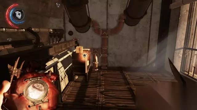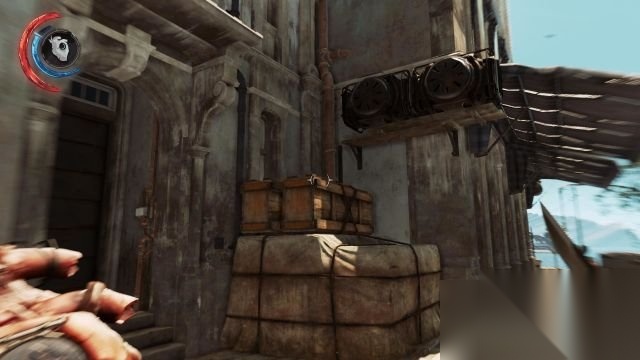 从获得画作《条件梦境中的界外魔》的建筑物另一侧的窗户外出到运河广场,马上拐入右侧的巷子,这里的另一侧出口是朝向码头。另外需要在巷子中掐晕一名站在商铺门前的守卫。 接着借助商店雨棚爬到高处,这时候往巷子入口方向的上方望去会发现一个窗户,借助高处的电机可以跳到窗口处,继而爬到屋顶可以在一具尸体旁拿到一个骨符。
