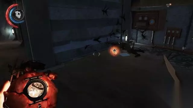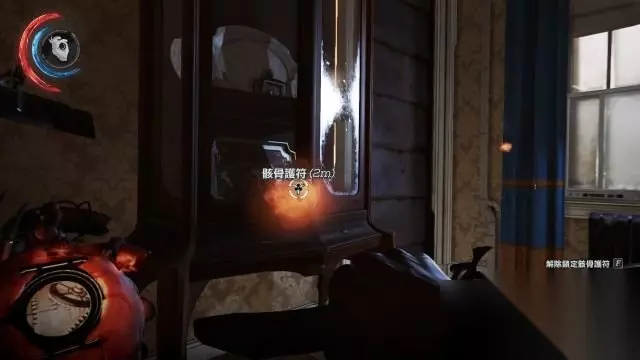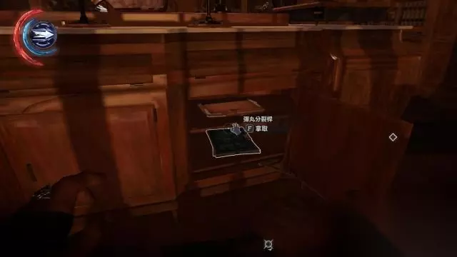 同样是使用客厅书房降落到负一层,这时候会出现搜寻索科洛夫的提示。 撂倒周边的守卫去到远方的走廊口,发现这里有一个光幕无法通过。 而在光幕左侧的管道下,从抽屉中拿到一个骨符。