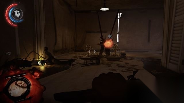顶楼是一个叫作汉密尔顿的人的办公室,可是门是锁着的。 这时候可以借助电梯井回到二层,使用海芭夏的钥匙打开左侧的门,在走廊内会有守卫,马上翻入走廊左侧的破碎窗户,去到前方第二个房间内可以见到疯疯癫癫的汉密尔顿,他表示自己有弑君者的情报,在其身后的铁匣子内可以拿到汉密尔顿办公室的钥匙。 在汉密尔顿的办公室内,在工作台上拿到一份蓝图——《水银蒸馏》。