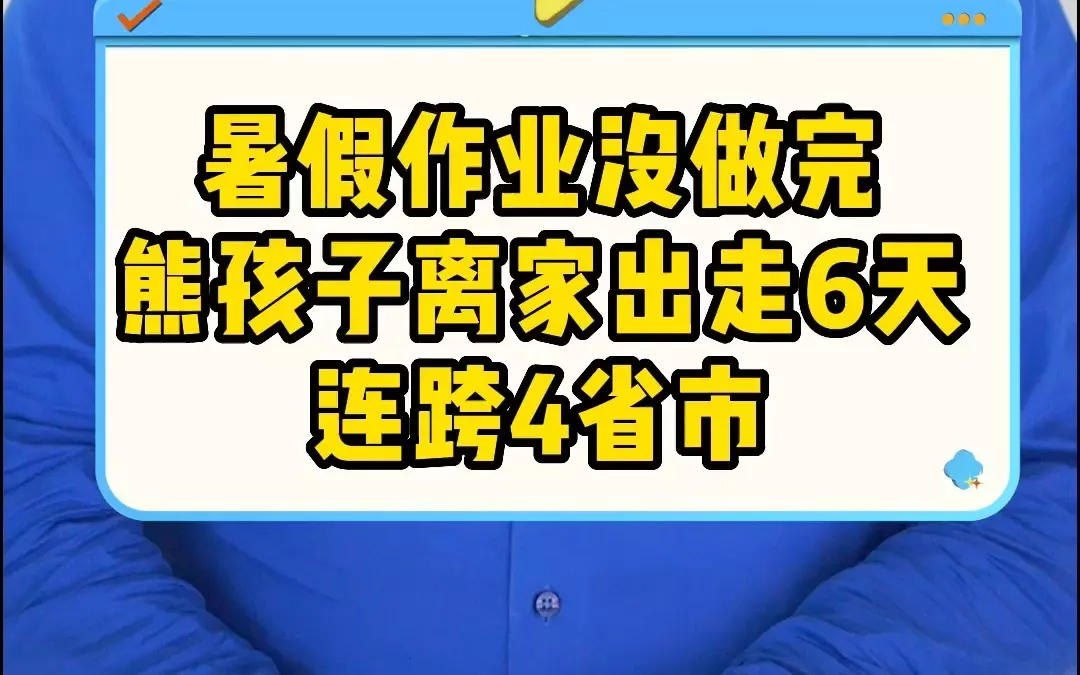 暑假作业没做完 熊孩子离家出走6天 连跨4省份