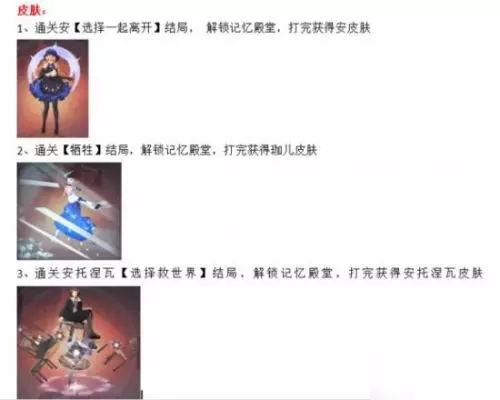 1.安(初始B) 亮点:大招回溯解控回血,某些时候可以单挑boss的存在。神器减cd满级的话也非常强力。 获取条件:初始剧情自动获取 2.初始C神使一个 获取条件:初始教程抽 3.随机B神使一个 (这个能算免费角色吗……姑且先写出来吧) 获取条件:累计第3抽 4.随机A神使一个 (这个能算免费角色吗……姑且先写出来吧) 获取条件: 累计第5抽,A神使碎片2。 累计第10抽,此A神使碎片1,得到A神使。 5.珈儿(初始C) 亮点:被称为珈神的物理系高爆发选手,在装备足够好的情况下很强。 获取条件:高校学园通关获取。 6. 薇拉(初始B) 亮点:超大范围控制型AOE大招。 获取条件:领邮件,不知道这个角色作为公测奖励会送多久。 7.雯梓(初始C) 亮点:强力辅助,强力控制,很好的风筝角色,白棋贼好用。 获取条件:选择先攻略东方古街,通关即可获得。 8.塞斯(初始C) 亮点:有奶有控有无敌,自带复活。 获取条件:选择先攻略中央城区,通关即可获得。 9.西比尔(初始B) 亮点:建设10。 获取条件:从2周目开始在打过高校学院关卡前,第一天先点一下高校学院触发剧情安托提到带你见一个人,准备36w金币去巡查中央庭进入支线见安托引荐的人,交掉36W金币拿到塔罗牌通关高校学园。 后一天时带珈儿巡查中央庭即可获得。 10.羽弥(初始B) 亮点:吸血法t,开发9。 获取条件: 碎片1通关研究所获取 碎片2通关记忆殿堂获取 11.阿岚(初始B) 获取条件: 碎片1通关海湾侧城获取。 碎片2达成箱庭风景(木偶戏)结局后解锁记忆殿堂并通关获取 12.艾露比(初始B) 亮点:总之就是打手。 获取条件: 碎片1通关旧城区,拿到黑核且选项全部倾向艾露比获取 碎片2记忆殿堂获取 13.幽桐(初始A) 亮点:帅,老公! 获取条件: 碎片1、2分别需要花费2个两周目通关2次港湾区获取(不需要拿到黑核) 碎片3记忆殿堂获取 14.米菈 获取条件:记忆殿堂通关获取 15.晏华 亮点:物理系高爆发 获取条件:记忆殿堂通关获取 16.芙罗拉 获取条件:记忆殿堂通关获取 17.安托涅瓦 获取条件:安托线随着剧情推进获取 18:白 获取条件:抽卡满140次拿20灵丹换20鱼干喂给猫咪,得到白 19:随机皮肤