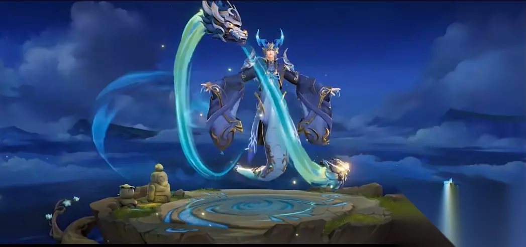 2、象征深邃冷静与神秘的蓝色,与代表力量与尊贵的金色交织搭配,突出尊贵而庄严的视觉效果。纯白的云珀也因黑暗能量的腐蚀化作黯淡的墨蓝,龙头眼中闪烁蓝光环绕身侧,其后拖曳幽兰火焰。