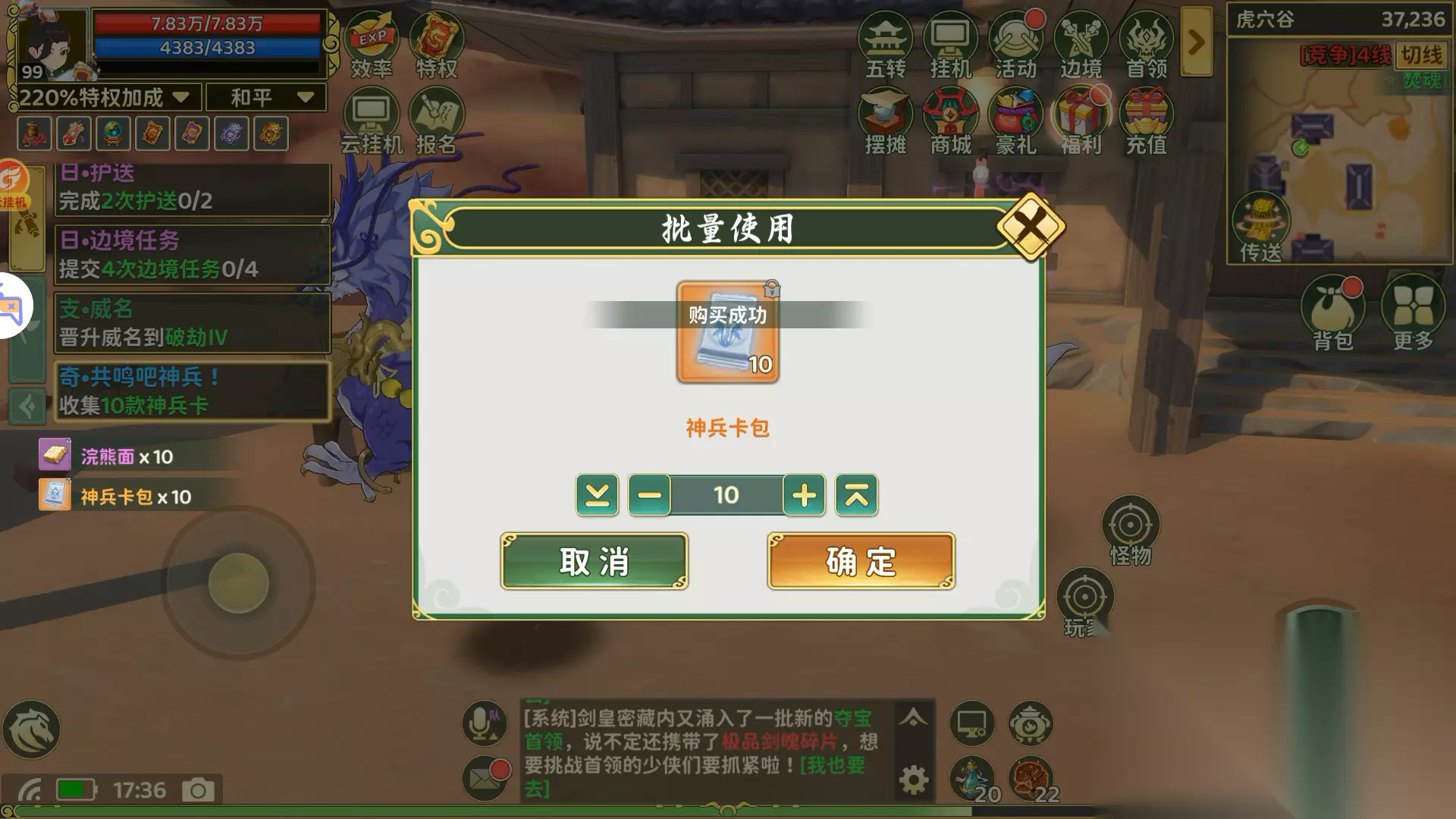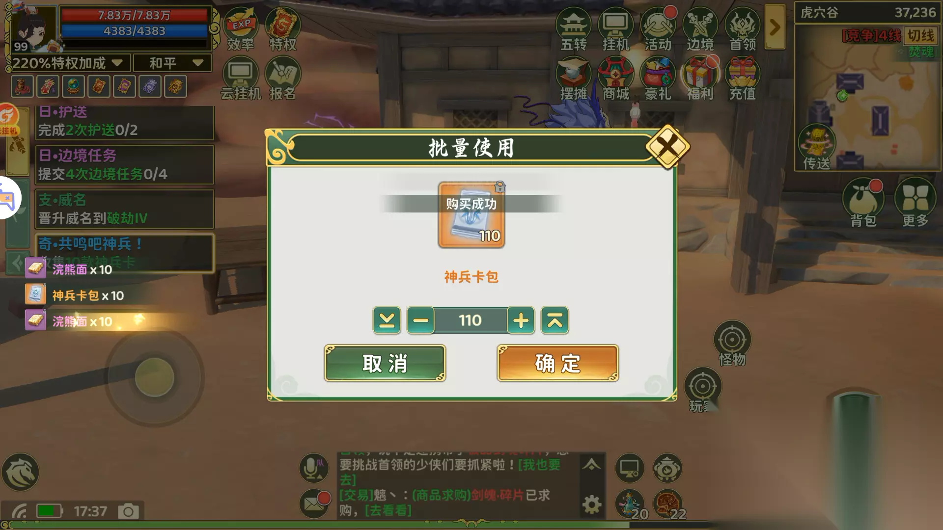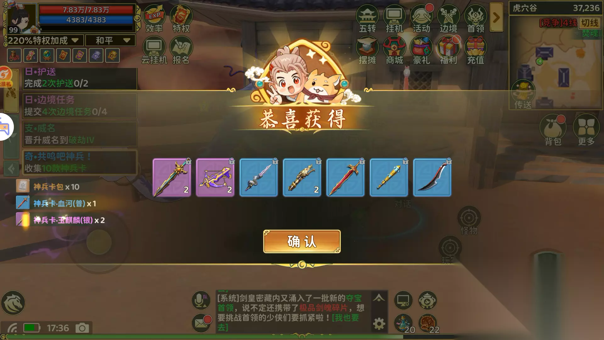 这样就快速完成了收集所有神兵卡的任务,比十包十包拆快多了。