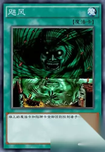 七、飓风 这张卡又名为“热带低气压”,禁卡表的常客,拥有清场魔法陷阱的可怕能力,但是这也并不是被禁的最主要原因。它能让“光之护封剑”、“过早的埋藏”有复数使用的可能。