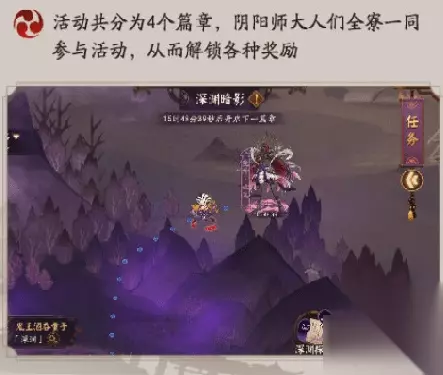 一速追月神:招财,速生生; 二速山兔:火灵,速生生; 三速般若:散件/招财/涂佛速命生,堆极限命中; 四速丑女:心眼荒骷髅,攻(生)命生; 五速晴明星盾; 尾速姑获鸟:针女歌姬,攻攻爆伤。 注意:晴明第一回合先放盾,草人挂给椒图优先击杀;到了般若回合记得标记回椒图,稳定封住地藏。 如果练度不够,可以先去刷战斗获得全队属性加成。 深渊暗影・鬼域篇开启~~ *鬼域深处,一道万丈深渊拦住众人的前行道路。这万鬼厮杀的炼狱中,隐隐传来极为不祥的气息…… 大江山、源氏一行皆已抵达此地,尸山血海之下,如同鬼神的身影正进行着暴虐的屠杀,迎接他们的又会是怎样的挑战? *活动时间:4月7日维护后~4月12日23:59(体验服) *剧情体验时间为4月7日维护后~4月14日维护前 *活动分为'深渊探索'、'鬼域讨伐军'、'魔神征伐'、'阴阳寮排行'4个主要玩法。