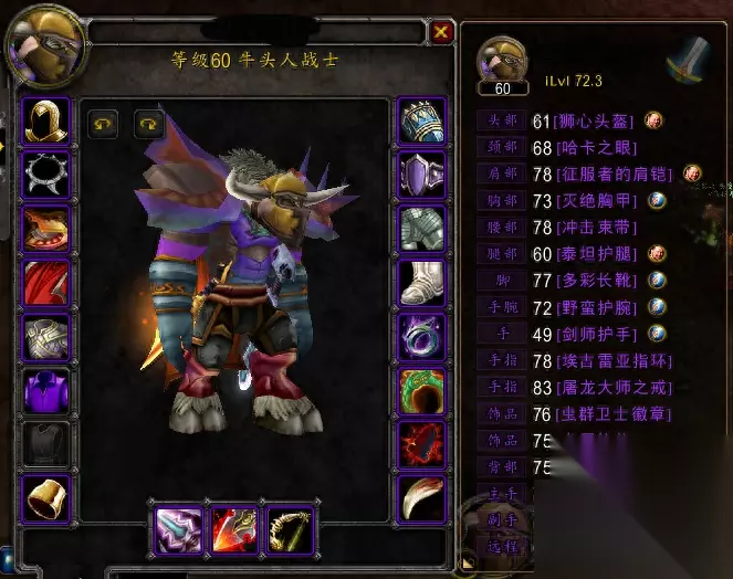 在《魔兽世界》中,战士是一种强大的近战职业,其中双持武器的战士更是在战斗中展现出强大的输出能力。然而,选择什么样的武器,以及如何配合攻速,对于战士的战斗效果有着显著的影响。因此,我们编写了这篇《WoW战士双持武器攻速选择》的文章,希望通过详细的分析和解释,帮助您更好地理解和掌握双持武器战士的攻速选择,以提升您的游戏体验。 为了数据准确性,以下数据均无世界BUFF。 主要分析目标: (实验组)主手副手武器攻速相同(同档位)与(对照组)主手慢副手快的输出收益对比 装备对比 下面来看一下老熊的武器装备选择: