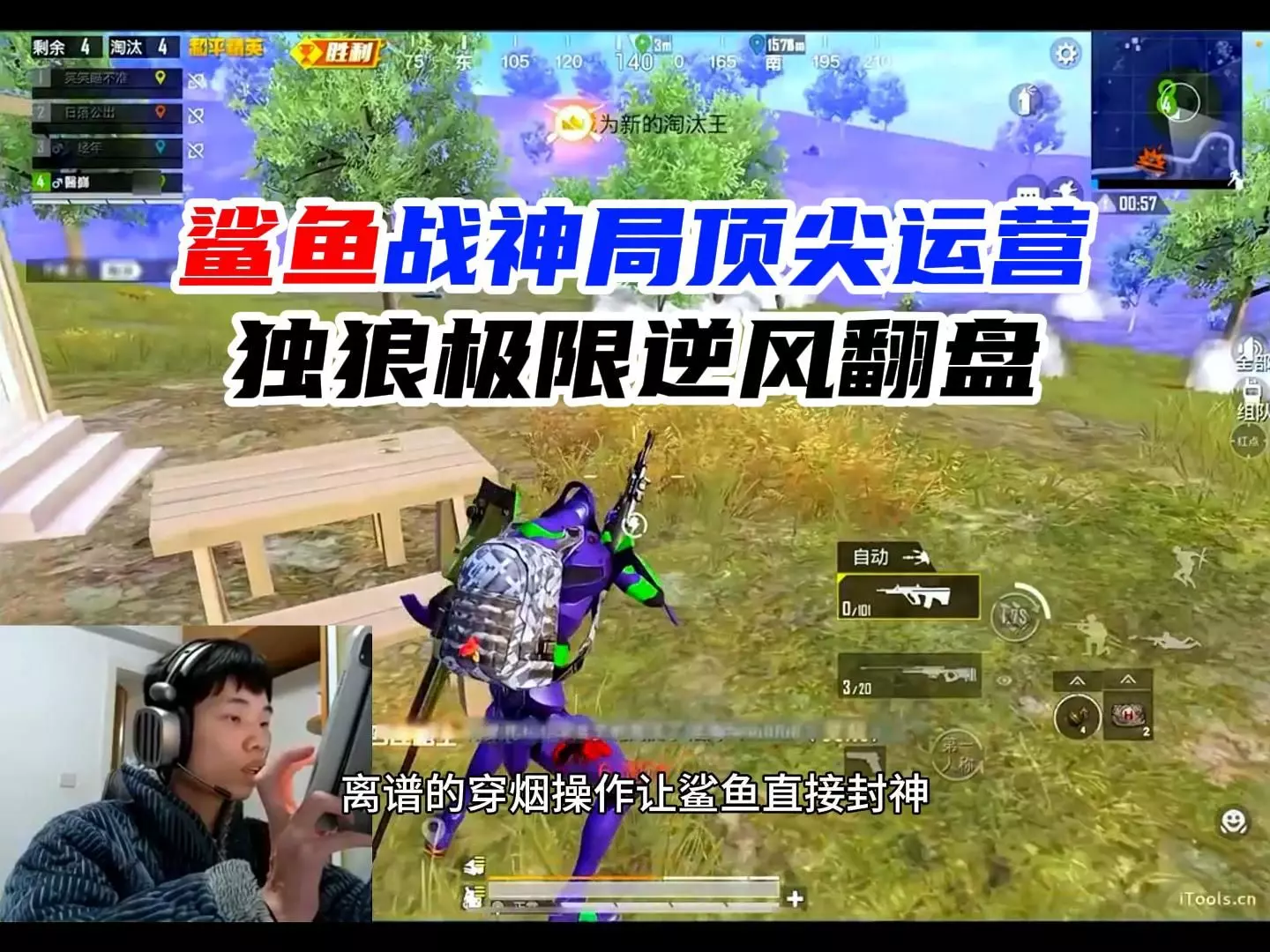 这是《和平精英》主播鲨鱼的游戏内容,他在准战神局匹配到低分队友,过程中出现骑马、遭遇爆炸等趣味场景,结局十分搞笑,带来欢乐的游戏体验。