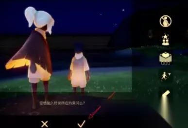 4、最后在点击完成之后,点击勾,在确认加入好友所在的房间就可以了。