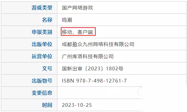 首先可以肯定的是鸣潮是有端游的,它是一款双平台游戏,游戏过审版号显示申报类别也是“移动、客户端”双端,这就说明游戏是肯定有PC版的,大家尽可放心。