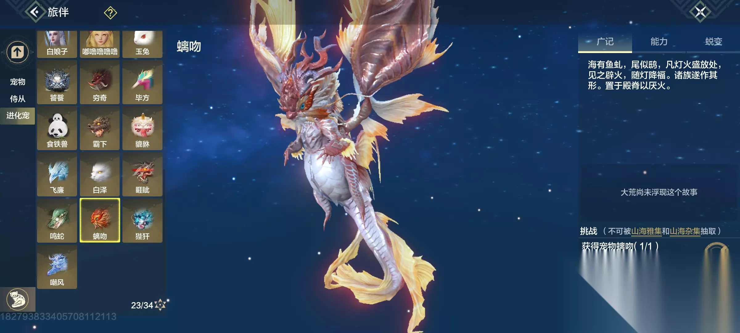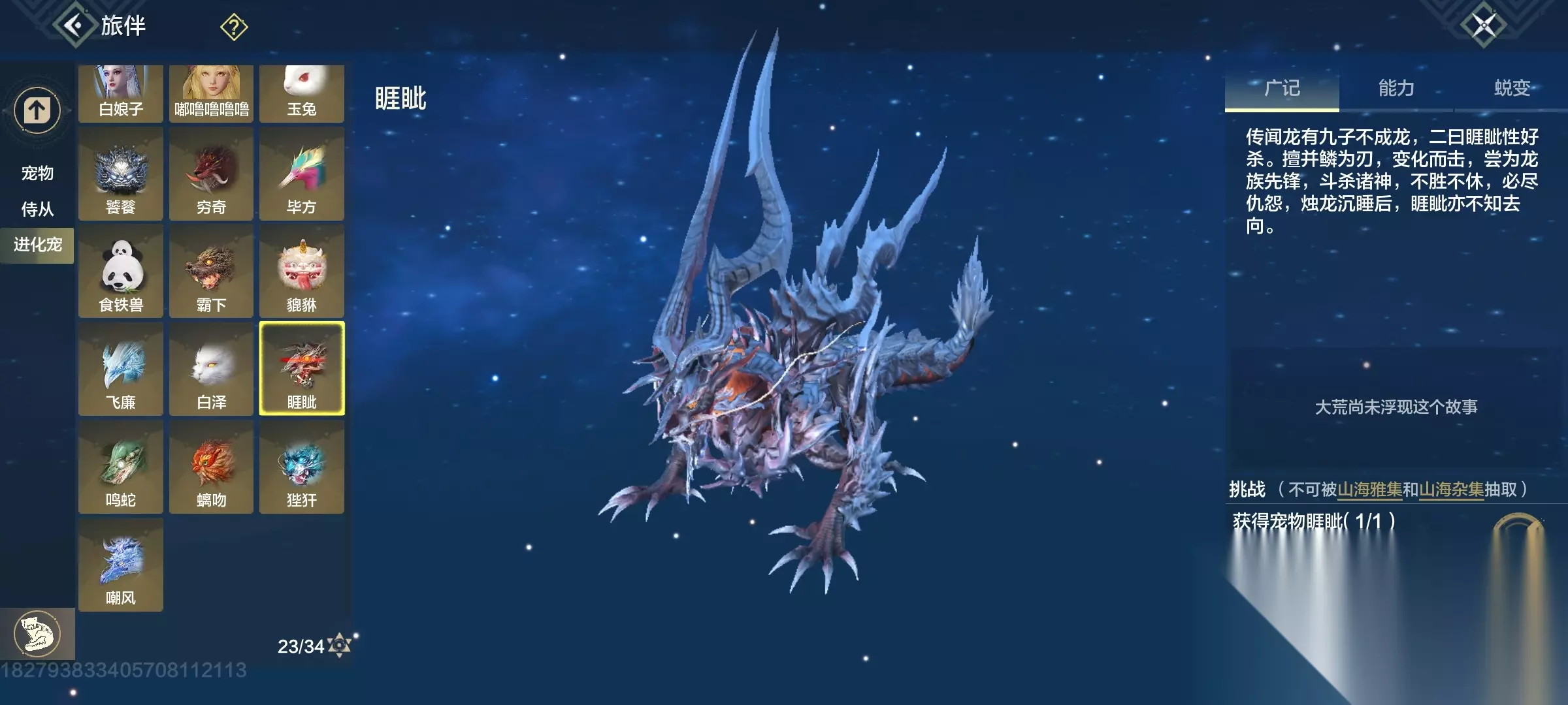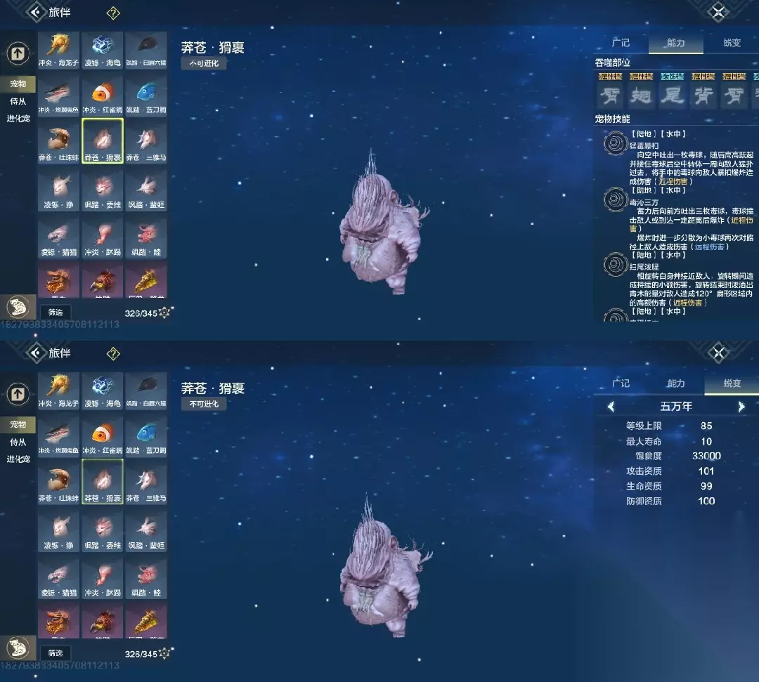 白泽 斗兽t1,四穿透部位,三尾巴一翅膀部位,吞噬变异部位最便宜的一只进化宠,养成成本大缩减,互动吞噬青木灵蕴短暂提高对应属性,2000元素穿透也未尝不可(必养)