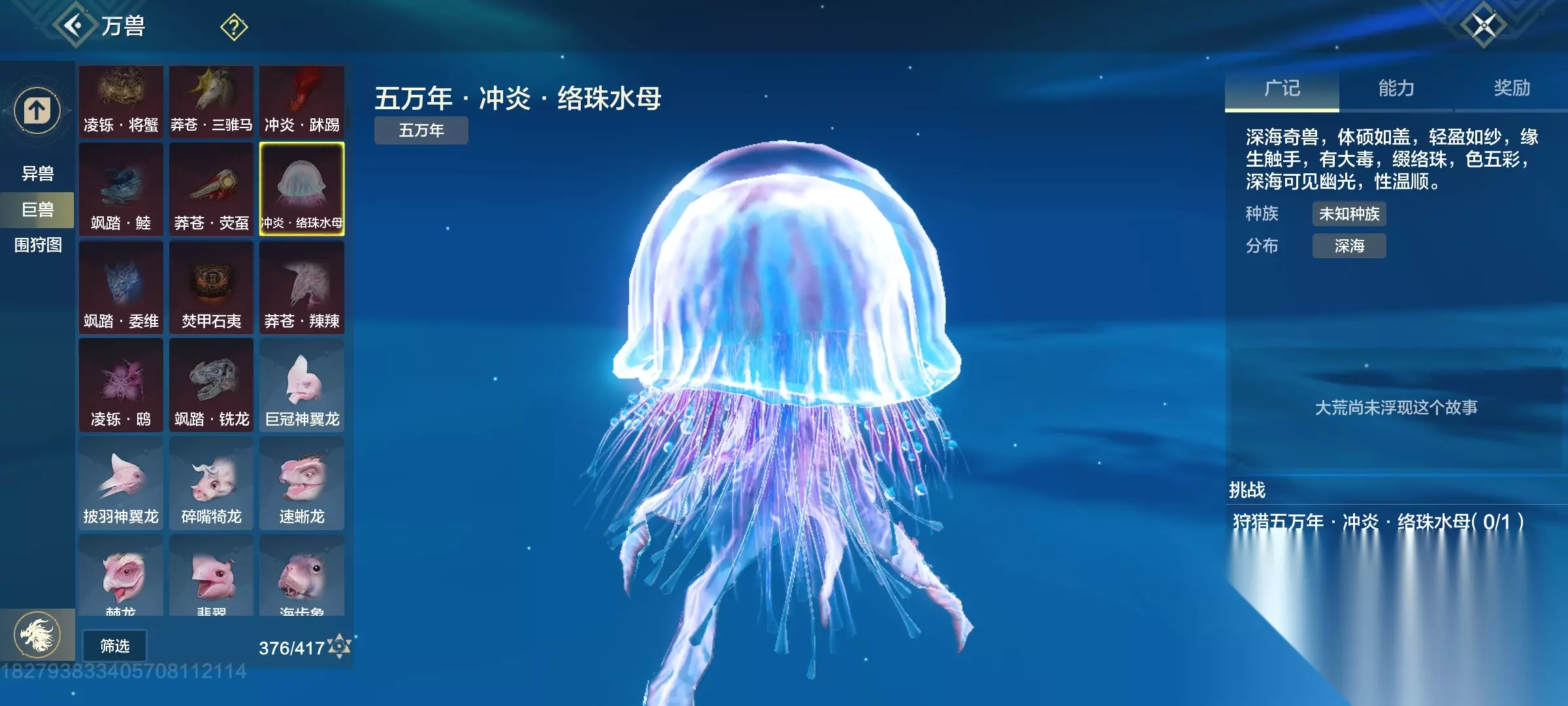鹙(qiu)鹕(hu) 双穿透部位,104攻击资质,大荒水边有幼年,高偏转比较好弄(推荐培养)