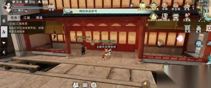 点击查看详情>>>《一梦江湖》江湖万象一盾千钧外观获取攻略 八、比格派那颇、还行吧外观获取 先探索金陵地图,在金陵地图下方,可以看到一个★号,点这里自动寻路来到冰窖坐标附近坐标(657,1016)。