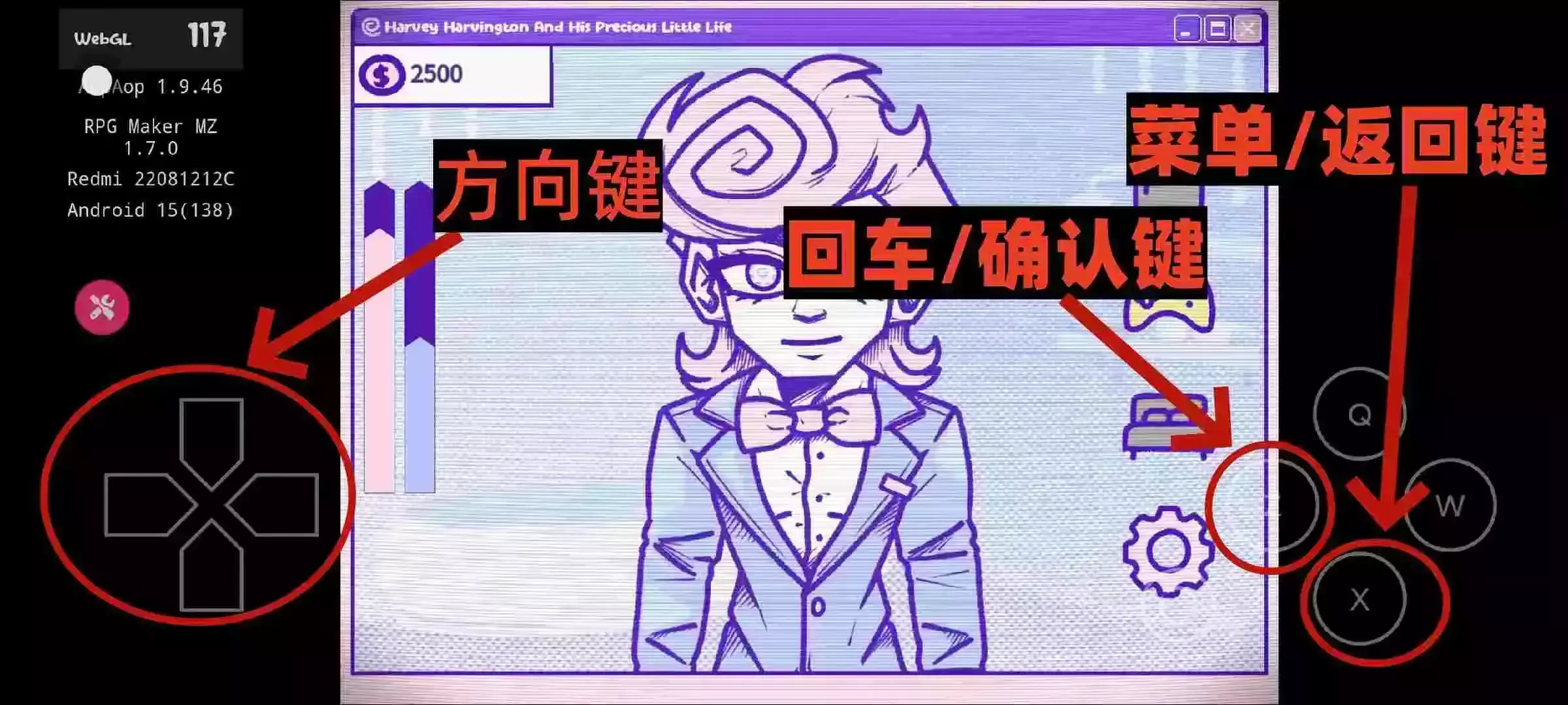菜单/返回键:用来存档、退出到主界面使用的
