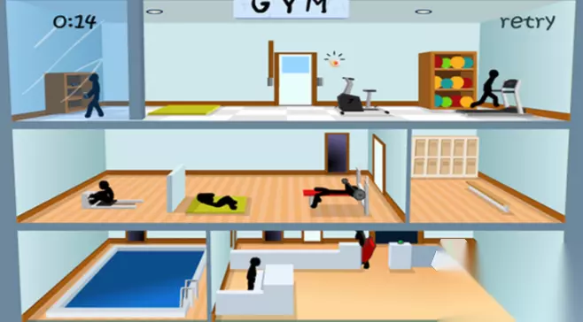 在游戏里,玩家能选择加入军团,和并肩作战的伙伴们携手攻克那些难度颇高的任务。在这个过程中,大家齐心协力,不仅能提升军团的等级,还能解锁专属的丰厚奖励。军团系统的存在,让玩家间的交流互动变得更加频繁和紧密,同时借助团队协作的玩法,让游戏的策略深度和可玩程度都更上一层楼。而且,游戏里的社交功能支持一键邀请好友,随时都能组队,一同感受枪战对决的紧张与刺激。 扫码下载该游戏 高速下载 普通下载 优先233乐园APP下载 5、《致命健身房-火柴人版》