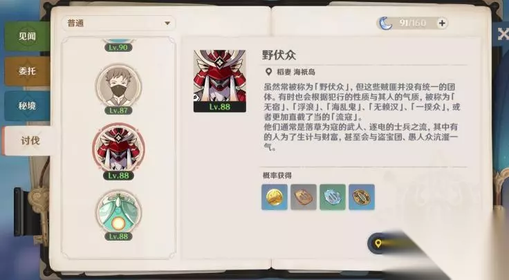 4.各类刀谭 击杀野伏众掉落,可通过游戏内的冒险之证寻找。