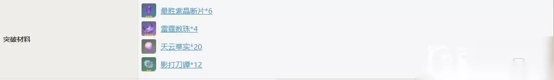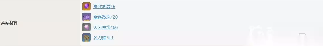 一:突破材料详情 1. 20级突破