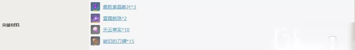 以上就是关于雷神突破材料的所有内容和相关知识,希望能对各位旅行者有所帮助,野伏众对于新手相当难讨伐,必要时候可以呼叫小伙伴一起攻略 ,多人攻略掉落物也是不会少的,可以放心联机。