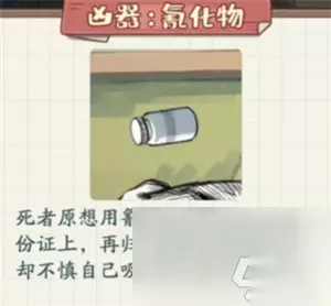 凶器:氰化物 死者原想用氰化物添加到陈功身份证上,再归还身份证毒害陈功,却不慎自己吸入氰化物中毒身亡。