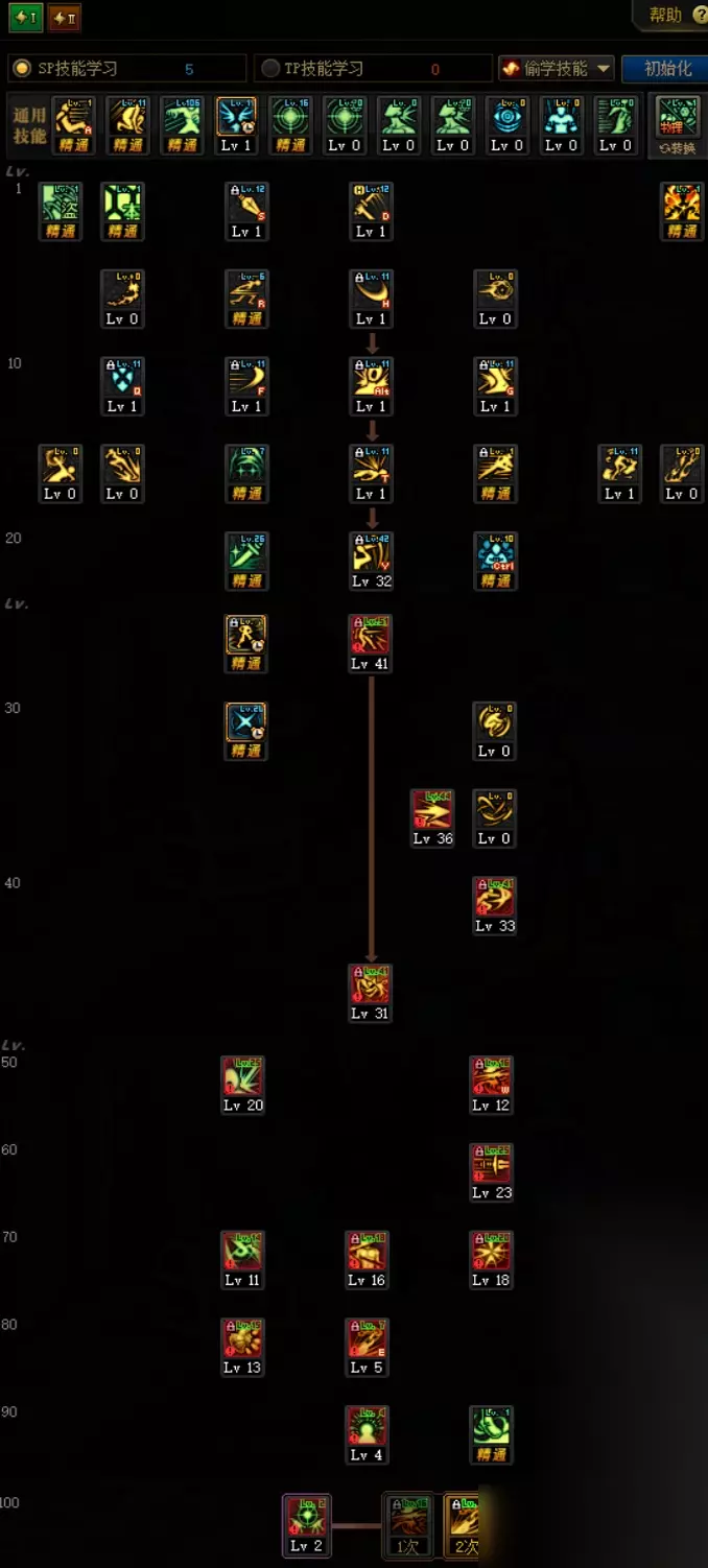 在tp上选择点满主力技能,余下的1sp分配给影袭提高控制能力。