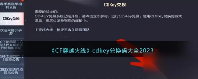 CF穿越火线是一款刺激的风格的手游,在这款游戏中,玩家进入到真实的3D场景的战斗的地图中来,让大家在这款大逃杀风格的游戏中来一展自己的强大的战斗力!游戏中大家可以通过cdkey兑换码获取额外的一些资源!那么CF穿越火线CDK兑换码有哪些,怎么获得呢?一起来看看吧!