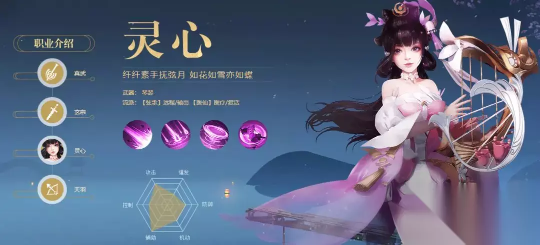 中后期顶级伤害,前期猥琐,灵活职业适合PK ③:灵心 弦歌(远程 / 输出);医仙(医疗 / 复活) 定位法师加治疗辅助,远程输出又带控,切换治疗可复活队友。 辅助职业适合小姐姐的职业,操作轻松 后期奶量超高