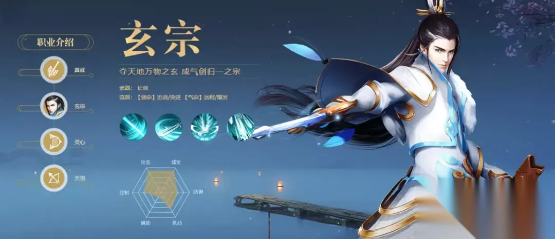 前中后期最强势职业,团战搅屎棍(控制) ②:玄宗 剑宗(近战/突进);气宗(远程/爆发) 近战(远程)爆发型 纯伤害职业,位移和爆发上拥有极强的优势