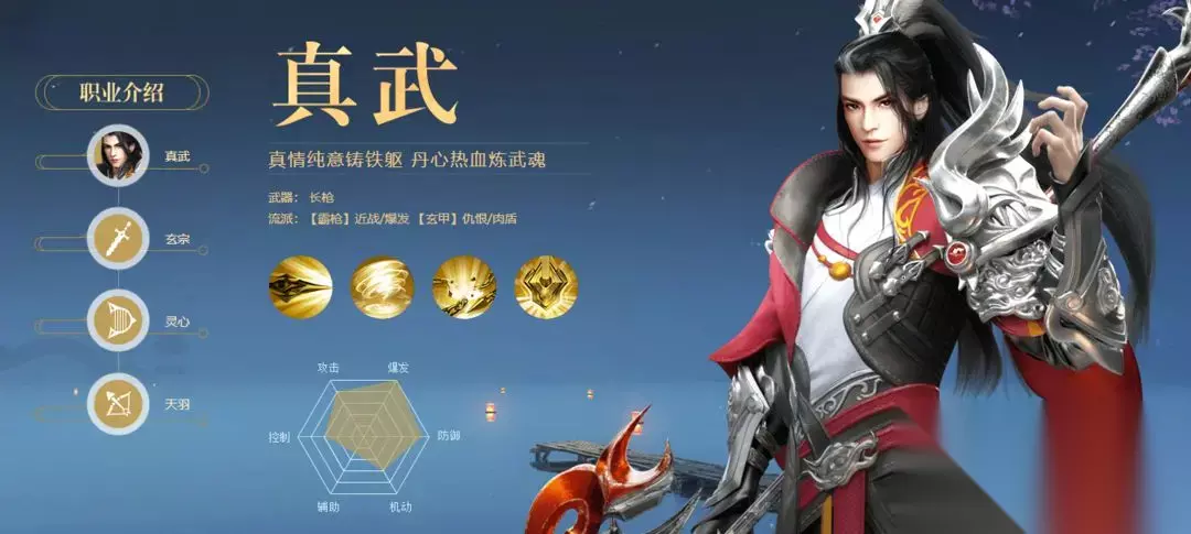 在龙武手游中有五个职业可以进行选择,分别是真武、玄宗、灵心、天羽和长歌,由于每个职业的技能和定位都不同,玩家可以根据这些选择一个喜欢的职业,具体可以参考龙武手游职业推荐攻略。 龙武手游职业推荐攻略 ①:真武 霸枪(近战/爆发);玄甲(仇恨/肉盾) 近战爆发,控场,肉盾 生存、控制能力极强 坦克型职业