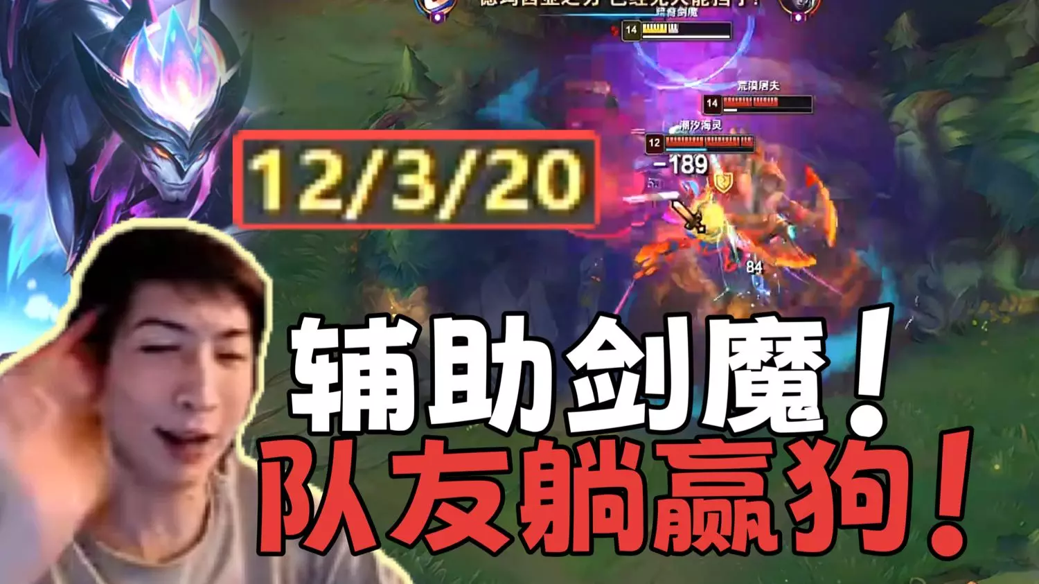 这是一局英雄联盟对局,被称为年度爽局,使用剑魔的玩家将有着国服第一盖伦之称的王慕霸打出0-12-0的战绩,三十分钟王慕霸连助攻都没有,压制力比小超梦还强。