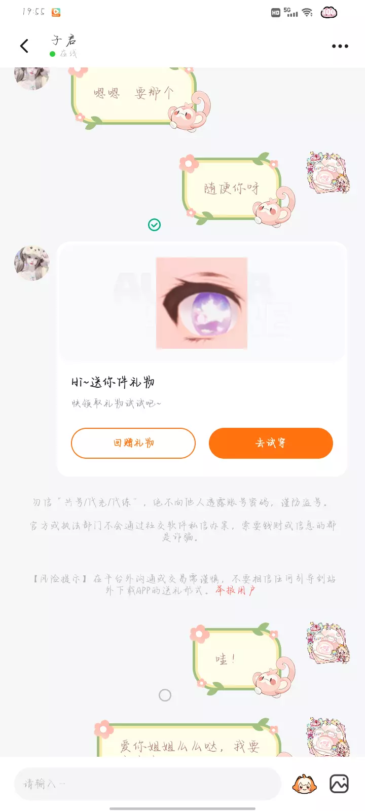 谢谢美丽的姐姐送我礼物