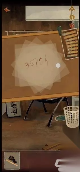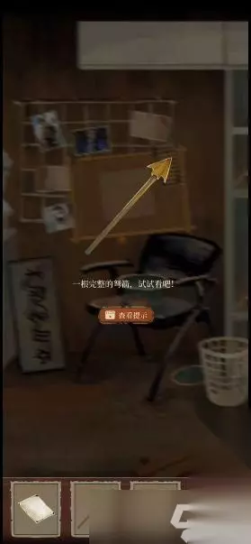 8、用起钉器拔除钉子,取得细绳。 9、组合箭头和小棍,将细绳和4支箭安装到弩。 10、用弩射击气球,拾取4张掉落的描红纸。 11、将4张描红纸放入板子并且旋转到正确位置,得到密码35784。