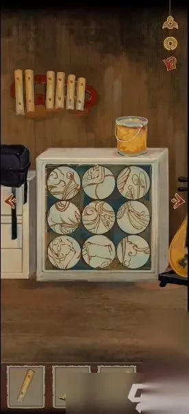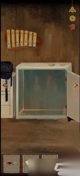 12、将2个琴键安装到钟琴上,用刀柄敲击钟琴(密码35784),拾取掉落的剪刀。 13、用剪刀剪开地毯,将地毯卷起来。 14、将卷起的地毯放入垃圾桶,用冰刀鞋拆卸通风口的螺丝。 15、摇晃签筒得到卦签,用卦签撬开橡果盒子,得到生肖猴石刻。